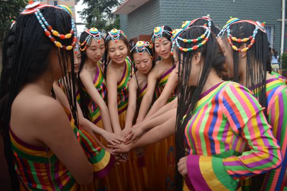 随着动感的音乐响起,孩子们的目光立马被舞台上酷炫的舞蹈动作吸引,这便是志愿者们带来的第二个节目——街舞《梦魇》。志愿者们化身青春的使者,舞动起自己的身躯,用自己的头顶、手臂、腰肢、秀腿;用他们轻捷的舞步,四射的激情,伴着强劲的节奏,舞起来。洒脱投入的舞姿引得台下喧嚣沸腾。一个完美的定格,舞蹈与音乐戛然而止,台下响起热烈的掌声,孩子们连连拍手叫好,意犹未尽。与此同时,在他们的掌声中又迎来了志愿者们的第三个节目——藏舞《溜溜康定溜溜情》。音乐响起,立即渲染了整个舞台气氛。艳丽的服装,灵动的身形,志愿者们用轻捷的舞步传达出别样的名族风情。富有力量又不失美感的舞姿伴着细响的铃声在一个优美的集体造型定格,结束了整个表演。