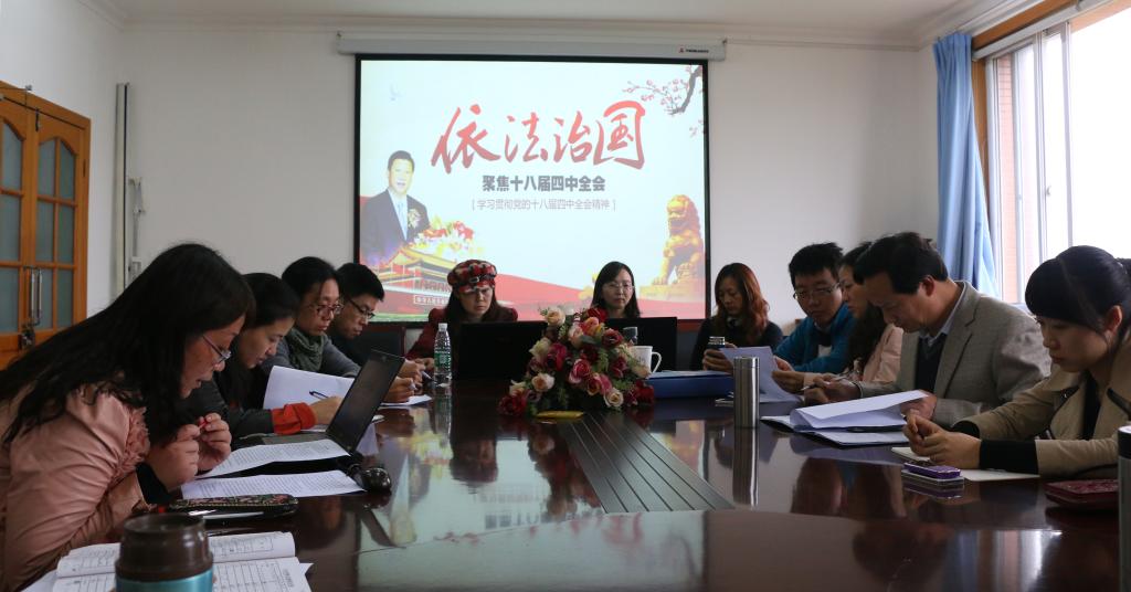教师支部书记梁京老师宣讲了《中共中央关于全面推进依法治国若干重大问题的决定》的主要内容。王子华指出,《决定》立足我国社会主义法治建设实际,直面我国法治建设领域的突出问题,明确提出了全面推进依法治国的指导思想、总体目标、基本原则,提出了依法治国的一系列新观点、新举措,回答了党的领导和依法治国关系等系列重大理论和实践问题,必将有力推进依法治国进程,是加快建设社会主义法治国家的纲领性文件。学院将深入贯彻十八届四中全会精神,进一步结合学校近期的工作重点,开展一系列“法律进学校”活动,全面推进依法治校,推动学院教学工作发展,并要求全体党员教师提高法制意识,加强师德修养,认真领会十八届四中全会精神,身先士卒,做好表率。