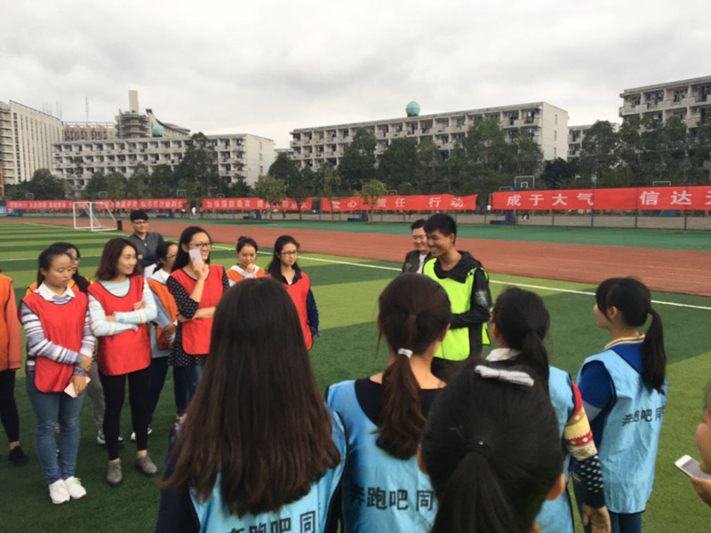 近日,betway88西汉姆联组织社会工作专业2016级的38位同学,在田径场举办了一场“奔跑吧,同学”的素质拓展训练活动,活动主题为—“熟悉校园环境,感受团队力量”。同学们分别在专业教练的指导下进行了两轮游戏:“争分夺秒”和“校园大挑战”,并在紧张与激动中完成了比赛。在“争分夺秒”中大家绞尽脑汁,跳出惯性思维,将扑克牌的顺序一页页翻正确,各个小组不断地自我突破。在“校园大挑战”的游戏中,利用手机微信开展校园定向,大家奔跑在校园各个角落,完成各项任务,包括认识学校历史、专业基础知识等。