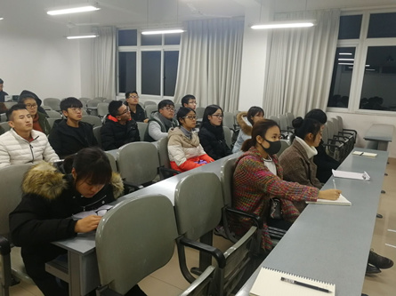 团课在各学生干部自我介绍中拉开了帷幕,团课当日为“国家公祭日”,团课以“铭记历史,吾辈自强”作为开篇,同学们首先观看了新闻视频——《拉贝日记》,观影后围绕“作为一名学生干部,我们应当做些什么?”的问题,同学们积极发言,展现了新时代大学生强烈的爱国主义责任感和自强自立的精神。在团课主题学习中,潘纯老师在简要讲解了参加团课的目的、共青团的基本知识的基础上,重点给同学们讲授了党的十九大主要精神。团课不仅结合同学们自身学习生活的实际问题和典型案例,帮助大家收获了学习生活经验和努力的方向,而且通过党的十九大主要精神的学习,使同学们进一步懂得了青年一代有理想、有本领、有担当,国家就有前途,民族就有希望。