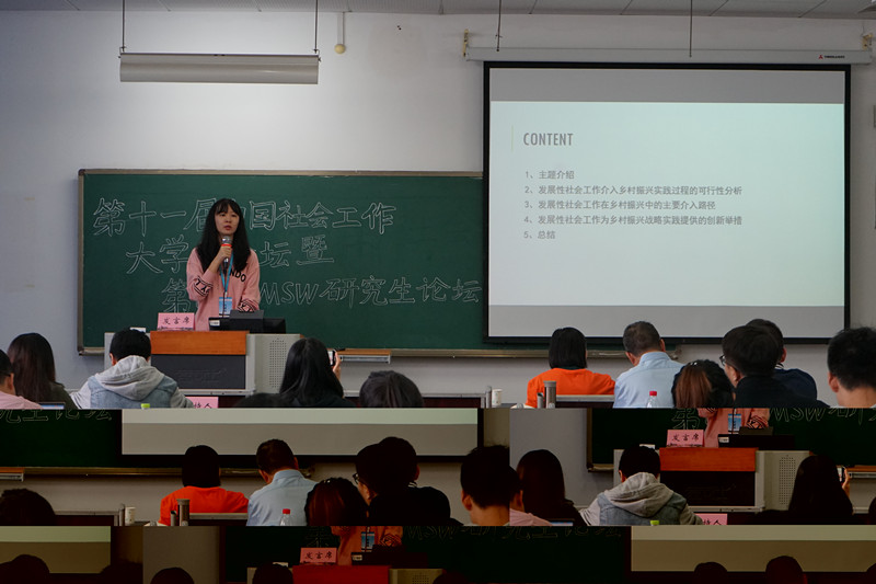 10月11日至13日,由全国社会工作专业学位研究生教育指导委员会和中国社会工作教育协会主办、重庆师范大学承办的“第十一届中国社会工作大学生论坛暨第四届MSW研究生论坛”在重庆师范大学顺利召开。中国社会工作教育协会副会长兼秘书长、北京大学博导马凤芝教授,中国社会工作教育协会副会长、南京大学博导、教育部MSW教指委委员彭华民教授,中国社会工作教育协会副会长、贵州大学公共管理学院党委书记庄勇教授,中国社会工作教育协会前任副会长、云南大学钱宁教授,重庆市民政局慈善事业与社会工作处邓明国处长,重庆师范大学副校长、博导杨如安教授及历史与社会学院党委书记周焱等来自全国数十位专家、学者和领导出席会议。