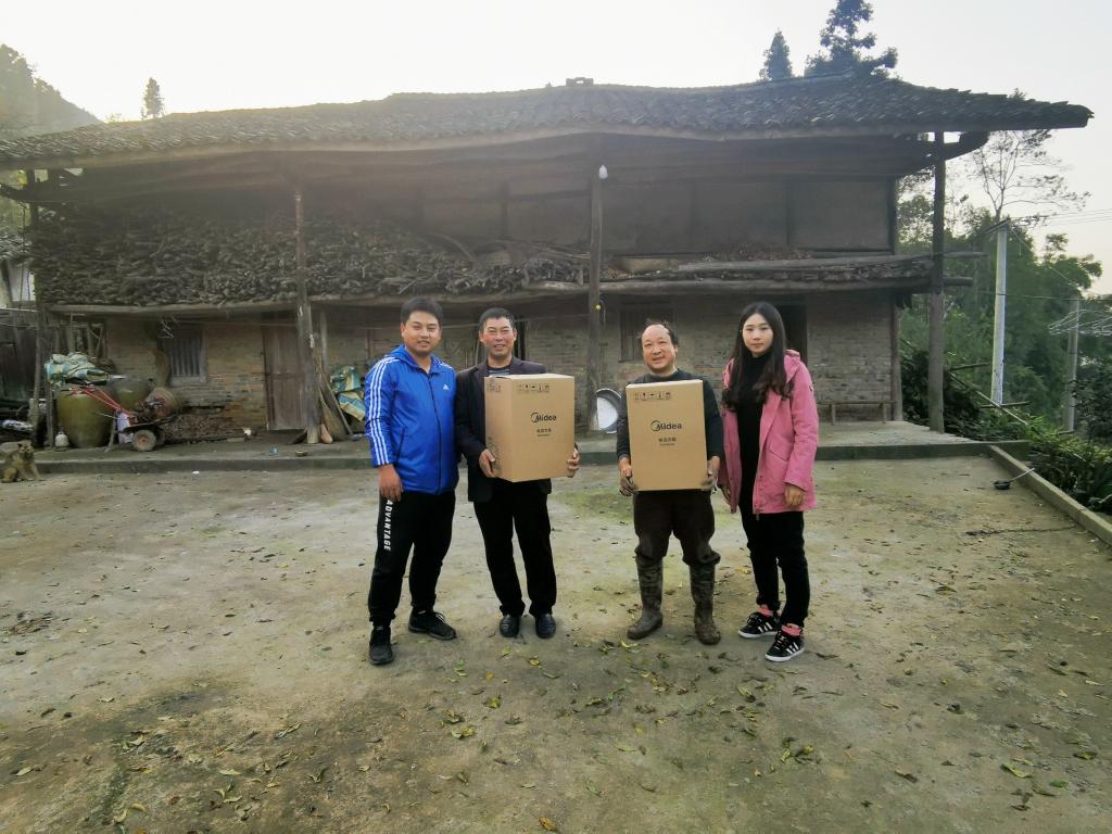 在与贫困党员交流中,李雅婧老师与廖述兵老师询问了党员们的健康情况以及生活当中存在的困难,从生活条件、家庭状况等方面了解了党员的情况,并且代表学院为村民党员们送去了爱心物资。