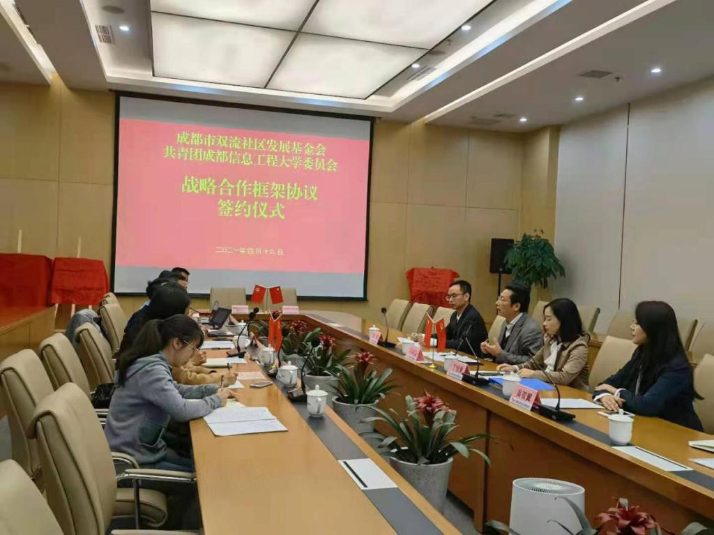 4月19日,共青团成都信息工程大学委员会与成都市双流社区发展基金会在成都感知物联网企业幸福中心举行战略合作框架协议签约仪式。我院副院长吴双翼代表betway88西汉姆联参加了该仪式。