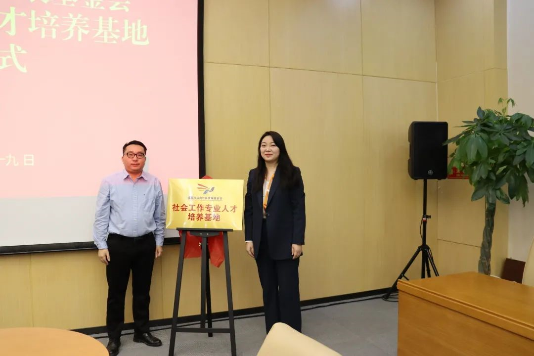我院副院长吴双翼与成都市双流社区发展基金会理事长朱九林共同为成都信息工程大学“社会工作专业人才培养基地”揭牌