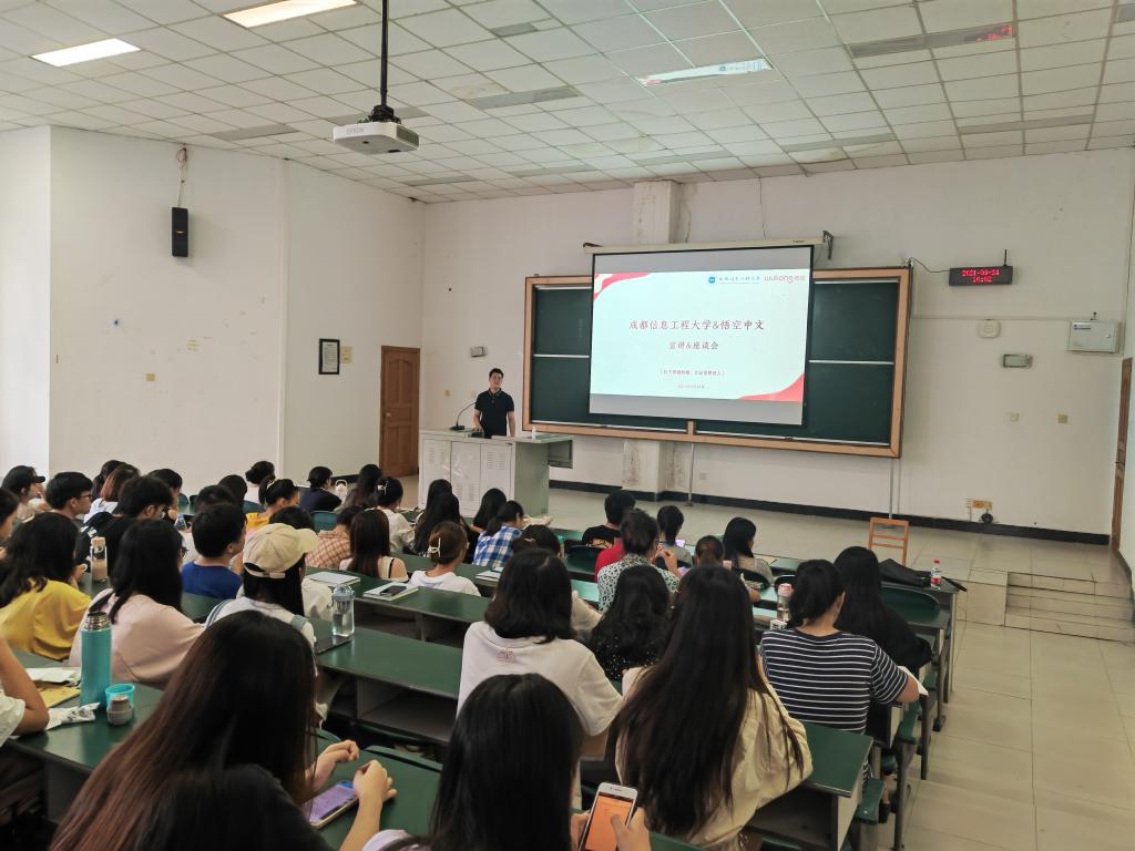 9月24日下午,为树立专业信心,转变新时期就业观念,加强对应届毕业生就业的指导与帮助,betway88西汉姆联在龙泉校区3101举办专业教育暨就业宣讲会,特邀悟空中文中国总部的人事负责人周俊颖、教师团队负责人张若梅介绍当前汉语国际教育专业面临的机遇与挑战,就业新业态以及当前悟空中文岗位招聘情况等。汉语国际教育系全体本科生、研究生参加了宣讲会,由汉语国际教育系主任许有平主持。