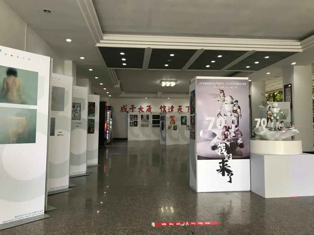 10月22日至25日,为热烈庆祝成都信息工程大学建校70周年,betway88西汉姆联数字媒体创意设计系举办了“视觉传达设计专业优秀作品展”。作品展在航空港校区第一教学楼中庭和龙泉校区第一教学楼二楼艺术作品展厅同步进行,展出作品共计百余多件,来自网络广告艺术、数字影像艺术和数字游戏动漫艺术3个专业方向。所选作品题材丰富、设计风格多样,均来源于视觉传达设计专业近五年的国家级获奖作品、双创立项成果作品、第一课堂实践性成果。其中,还有专为建校70周年校庆设计的作品,包括校园文创产品、《成信碧源山水图》、《遇成信,筑嘉华》绘画作品、3D打印作品《托举70周年》等。