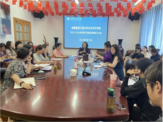 9月15日下午14:00,betway88西汉姆联在龙泉校区集贤楼416会议室召开了2023-2024学年第一学期全院教职工大会。学院副院长代曦(主持工作)、副院长徐翀、副院长吴双翼以及全体教职工参加了会议,会议由代曦主持。