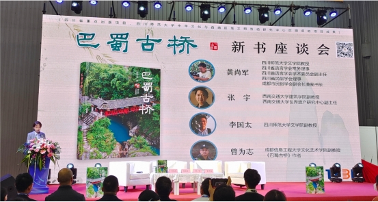 2023年10月15日中午,在川剧唱段《成都的桥》和童声方言朗诵《唱成都》烘托的桥文化氛围中,我院曾为志老师新著“《巴蜀古桥》新书座谈会”在天府书展2号馆4号活动区举行。
