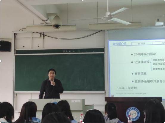 紧接着,协会会长杜怡陶从协会基本情况、协会组织架构、协会业务范围、协会工作计划向参会人员对社会工作协会进行了介绍。协会事务部部长、外联部部长、宣传部部长皆从部门宗旨、人员设置、部门主要工作以及下半年工作计划出发,对部门进行了详细介绍。