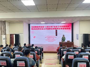 为落实学校乡村振兴相关工作要求,按照省委社会工作部革命老区、民族地区、边疆地区社会工作专业人才支持计划(简称“三区”计划)统一部署,马边彝族自治县“三区”计划社会工作赋能培训暨2025年社会工作者职业资格考试考前培训会由马边彝族自治县县委社会工作部、成都信息工程大学、成都市同行社会工作服务中心携手开展。