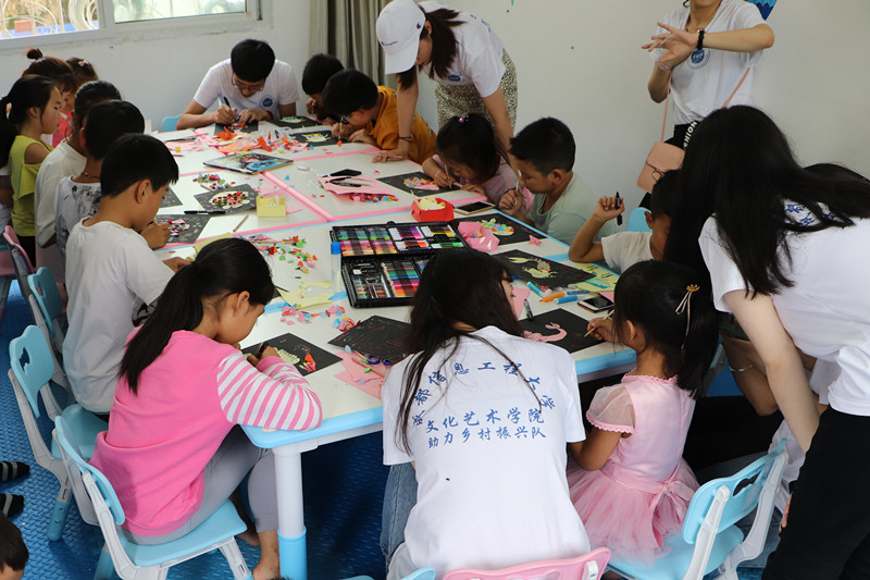 本次乡村义务支教课程主要包括书法艺术课、手工绘画课以及游戏互动课。团队成员以饱满的工作热情,与小朋友进行互动。在小老师们的耐心指导下,小朋友完成了他们各自的作品。队员们还组织小朋友参与了游戏互动,游戏中孩子们分组队完成了各自任务,并在游戏结束时,获得了精美的小礼品。彼此间的互动,不仅拉近了相互的距离,更是让大家收获了教育的意义:既要学会自主动手,独立完成,也要学会团结合作,共同努力。队员们的付出,换来了每个孩子们最单纯的笑脸。支教小组的到来,给孩子们带来了更多学习的机会,也给予了孩子们一个拓展视野的平台。