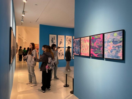 在沪杭考察路线中,主要参观了杭州和上海关于视觉传达设计、数字媒体艺术、影像、绘画、文创等领域的展览,考察专业美术院校,从而学习前沿的艺术风格,创作手法、表现形式以及了解行业现状。师生前往杭州考察了中国美术学院、杭州博物馆、浙江美术馆、中国国际设计博物馆。参观了“博弈论:亚运竞技主题数字艺术展”“迎接杭州第19届亚运会——艺术设计专题展览”等。从杭州的历史文化、到传统书画、再到数字艺术和亚运会主题平面设计,进行了多领域、多层次、多角度的考察学习。随后师生前往上海,参观了世博博物馆、浦东美术馆、徐家汇书院、上海自然博物馆、上海电影博物馆、震旦博物馆等的多个展览。